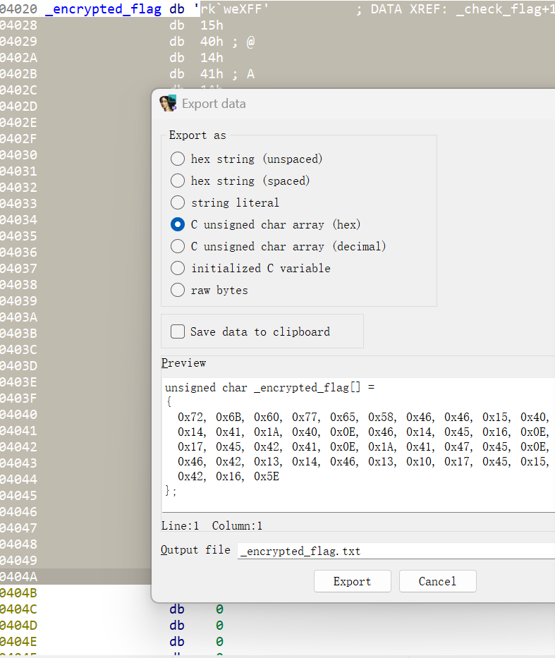 点开 xor_encrypt发现是简单的异或,分析得出flag异或后得到encryped-flag。
