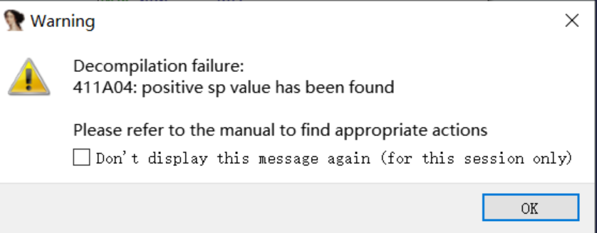 • 成因:在分析栈帧时,IDA出现异常,导致分析出错