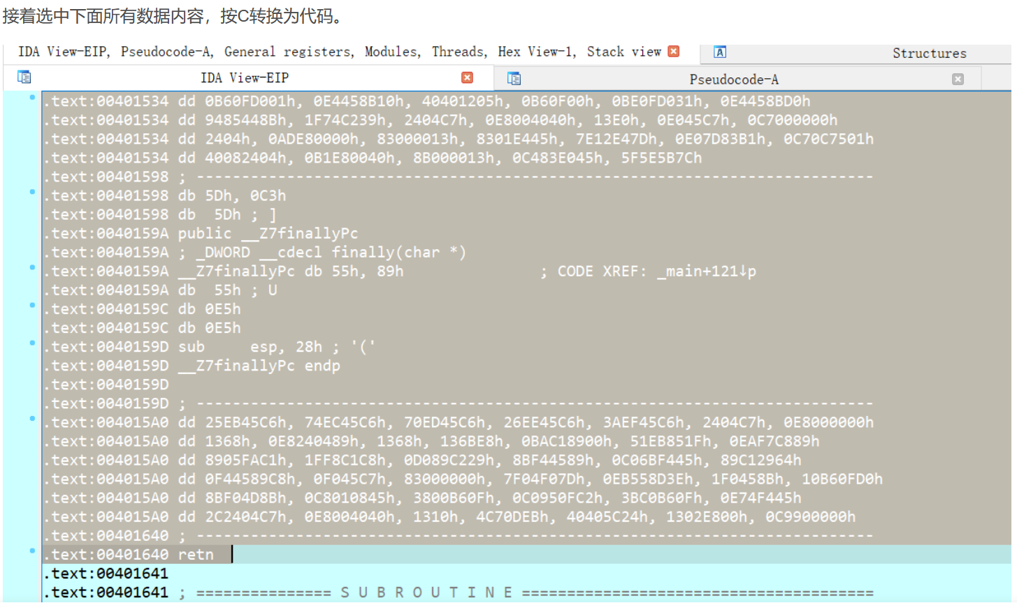 • 然后选中下面所有数据内容,按C转换为代码。